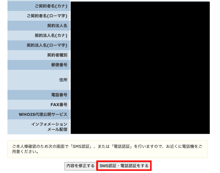 入力情報の確認画面が出ますので、情報に間違いがないか確認をしてください。問題がなければ、本人確認のための電話認証を行います。「SNS認証・電話認証をする」ボタンをクリックしてください。