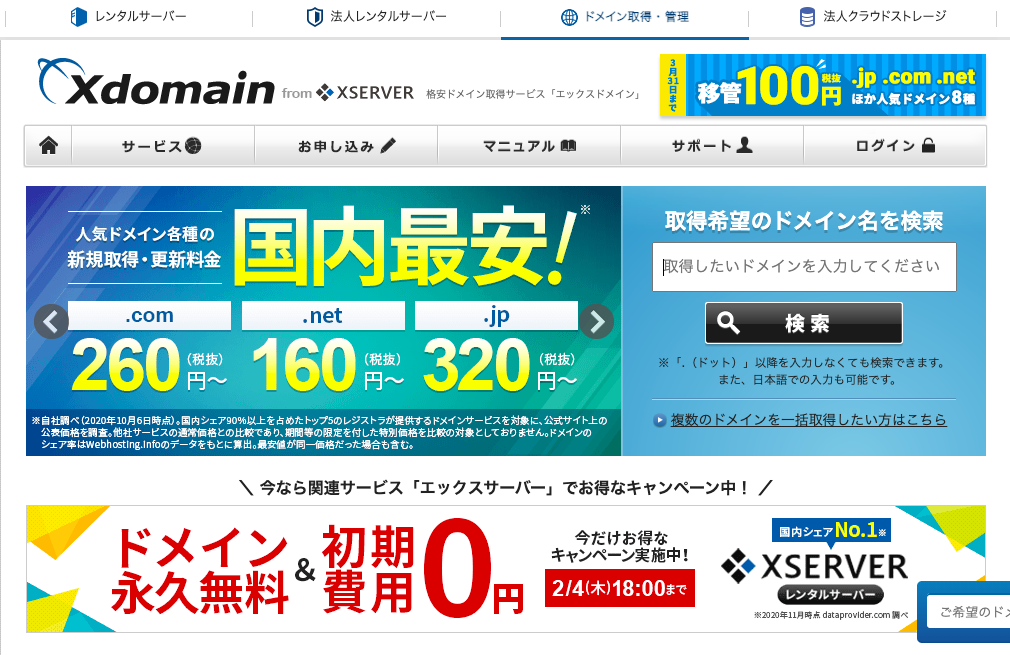 WordPressを始めるには、ドメイン取得が必要です。当サイトでは、人気の「エックスドメイン」での取得をおすすめしています。