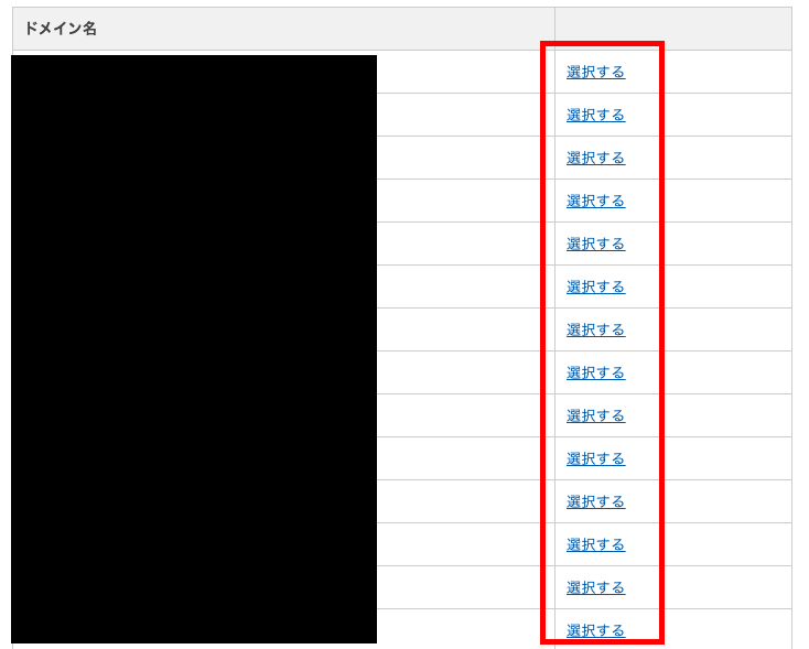 WordPressをインストールしたドメイン名の「選択する」ボタンをクリックしてください。