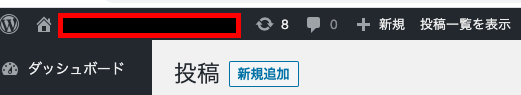 また、Wordpress管理画面の左上に表示されているブログタイトルをクリックすると、インストール時に設定したブログを確認することができます。