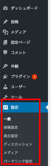 WordPressをインストールしたら、Wordpressの使いやすさ改善やSEO対策のために、まずは初期設定を行います。「設定」は、Wordpress管理画面の左側にあるメニューにあります。初期設定には6つの項目があります。