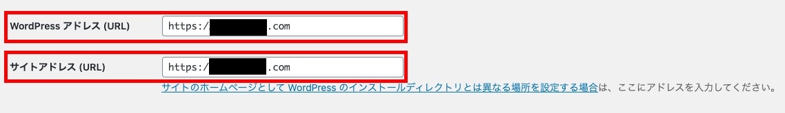 「Wordpressアドレス(URL)」と「サイトアドレス(URL)」は同じものにします。