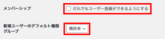 「メンバーシップ」の「だれでもユーザー登録できるようにする」にチェックを入れると、Wordpress管理者以外の人でもWordpress管理画面にアクセスし、記事やWebサイトの編集を行うことができるようになります。