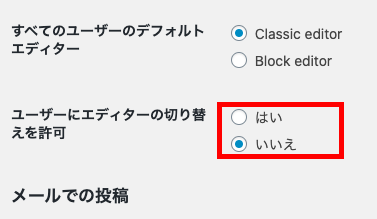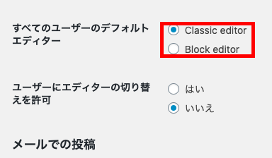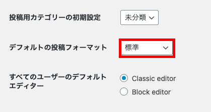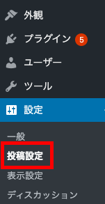 - 投稿設定:記事や固定ページの投稿に関する設定や、メールでの投稿に関する設定です。