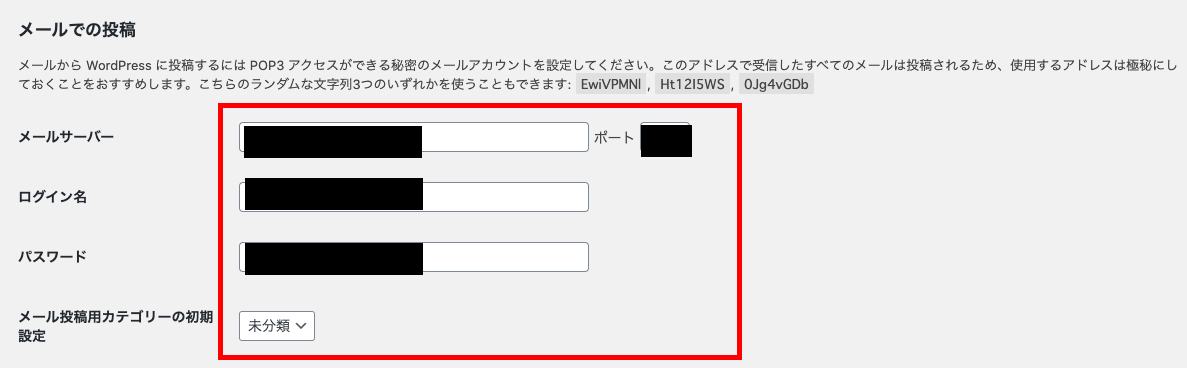 - パスワード:Wordpress管理画面へのログインパスワードを入力してください。