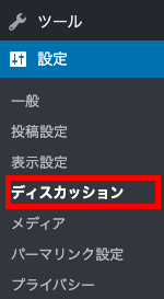 WordPress管理画面の左側にあるメニューの中から、「設定」ボタンをクリックした後に、「ディスカッション」ボタンをクリックしてください。