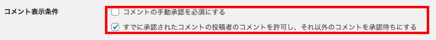 ここでは、コメントの承認条件に関する設定を行うことができます。