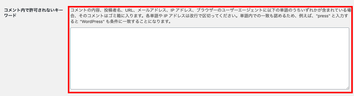 ここでは、コメントをゴミ箱に入れる条件を設定することができます。