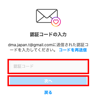 入力したメールアドレスの受信箱を確認し、認証コードをコピーしてください。
