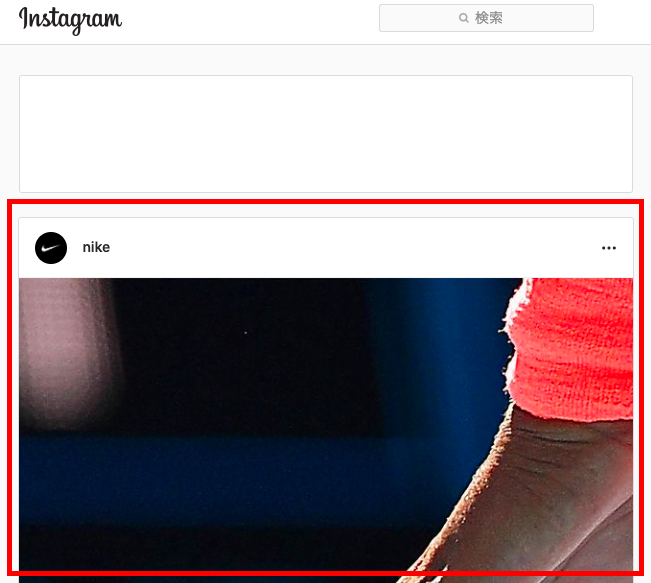 ホーム画面内の上記画像の赤枠部分がタイムラインです。ここには、フォローしているアカウントの投稿が最新のものから順に表示されます。